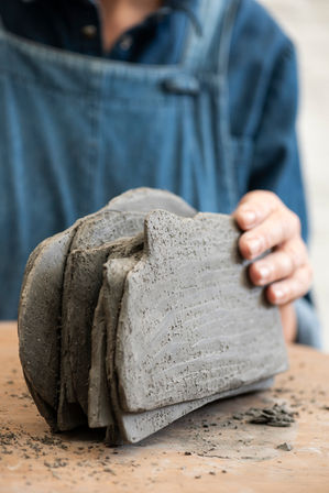 Isabelle Southgate est une artiste céramiste franco-britannique. Fille de marin, elle a grandi à Brighton, dont elle a arpenté le littoral. Aujourd’hui, elle vit et travaille en Normandie. Si les emblématiques falaises baptisées « Seven Sisters » se sont imprimées dans son imaginaire et ont marqué d’un sceau ses souvenirs d’enfance, elles entrent aussi en résonance avec celles de Varengeville-sur-Mer, au pied desquelles elle aime se promener. L’occasion dans ce décor unique d’observer les plis, les failles que le temps imprime sur des blocs de craie, attestant à la fois de leur lointaine origine et de leur touchante fragilité. En proie à l’érosion, travaillées par la nature, le temps et les intempéries, ces falaises, certes majestueuses et imposantes, se révèlent aussi vulnérables et friables. Des blocs qui portent en eux la marque d’une possible disparition, d’un équilibre précaire, tant les interstices qu’ils dévoilent nous ouvrent sur une certaine béance, un gouffre, qu’il nous appartient de remplir en y versant nos émotions, nos perceptions. Ce sont ces stigmates, ces fissures, ces fentes que l’artiste aime représenter. C’est dans les interstices que se cachent nos vérités, dans les fractures que se dessinent nos chemins intimes.